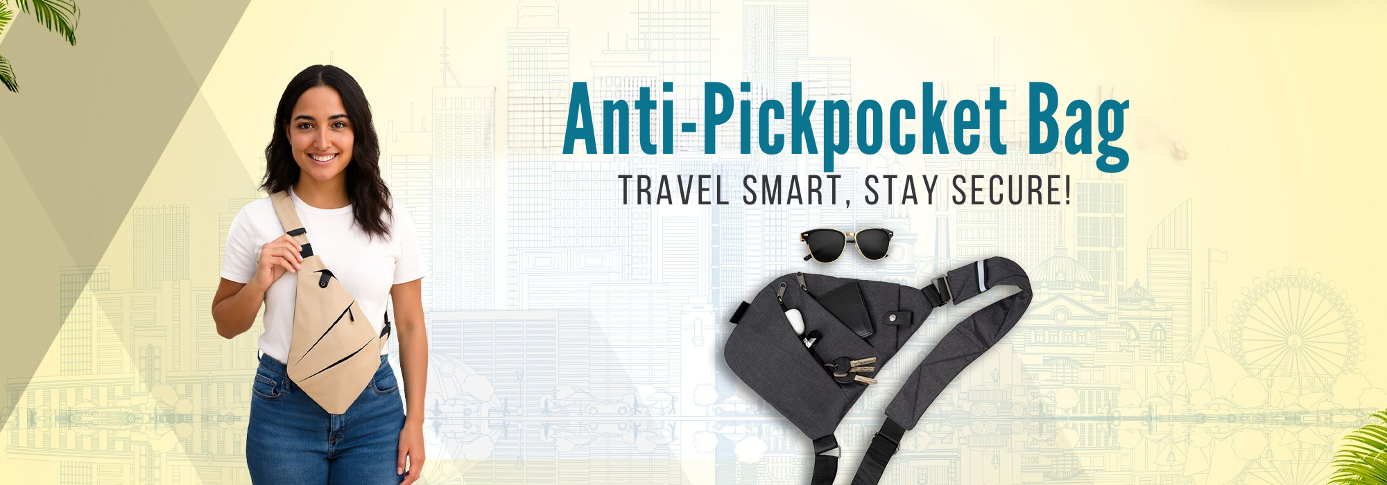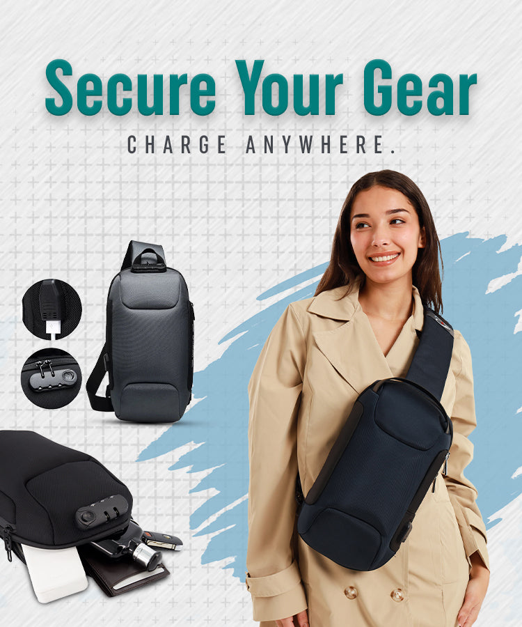 Sleek Anti-Pickpocket Lock bag with hidden zippers, USB charging port & lightweight design.